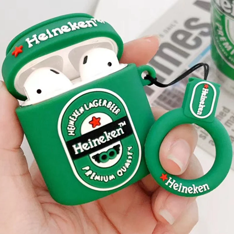 Deals Hot Green Leisure Beer Ring Soft Silicone Bluetooth Wireless Earphone Cover for Apple AirPods 1 2 B